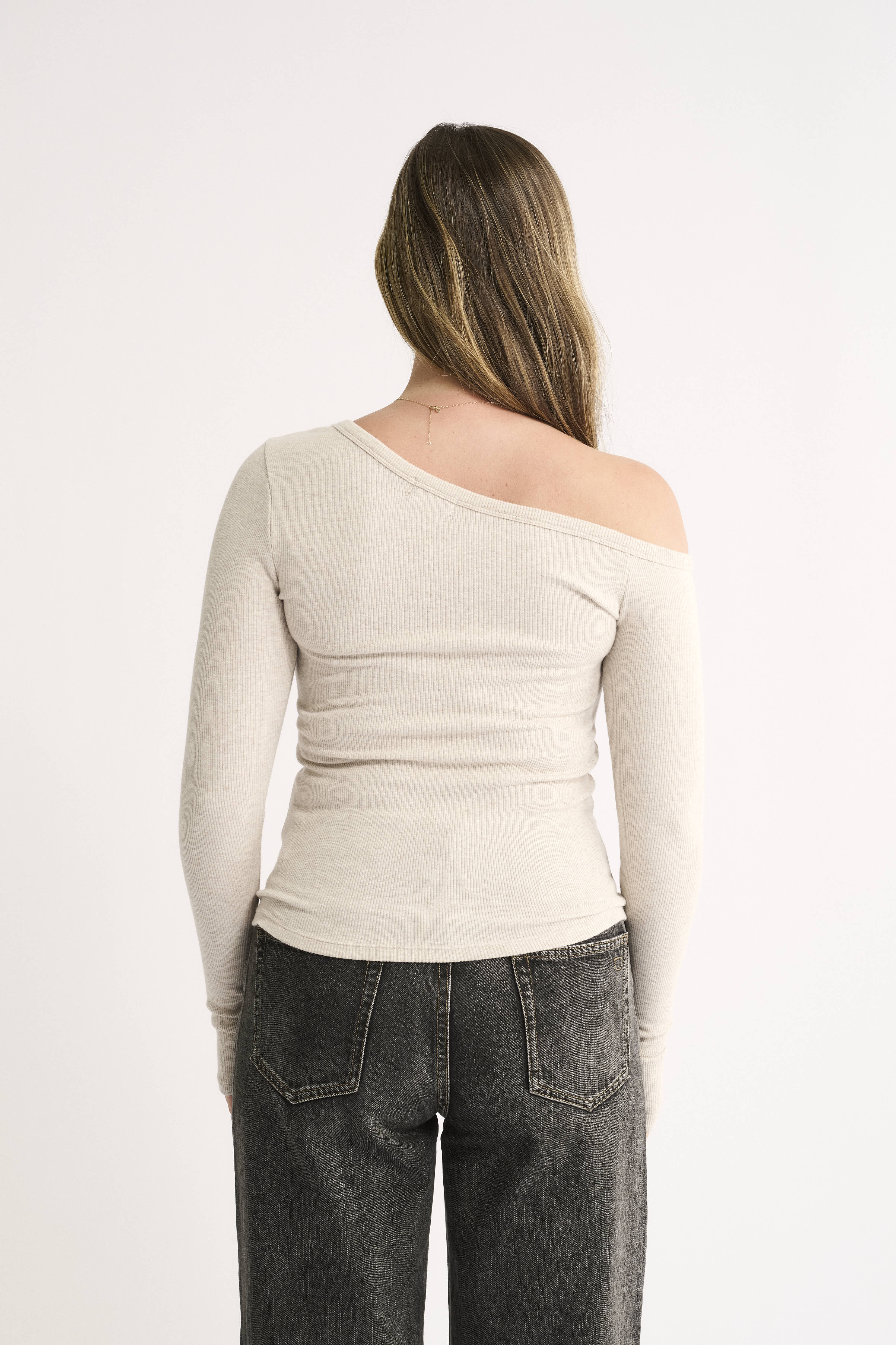 Chelsea Off Shoulder Long Sleeve - Oatmeal Marle