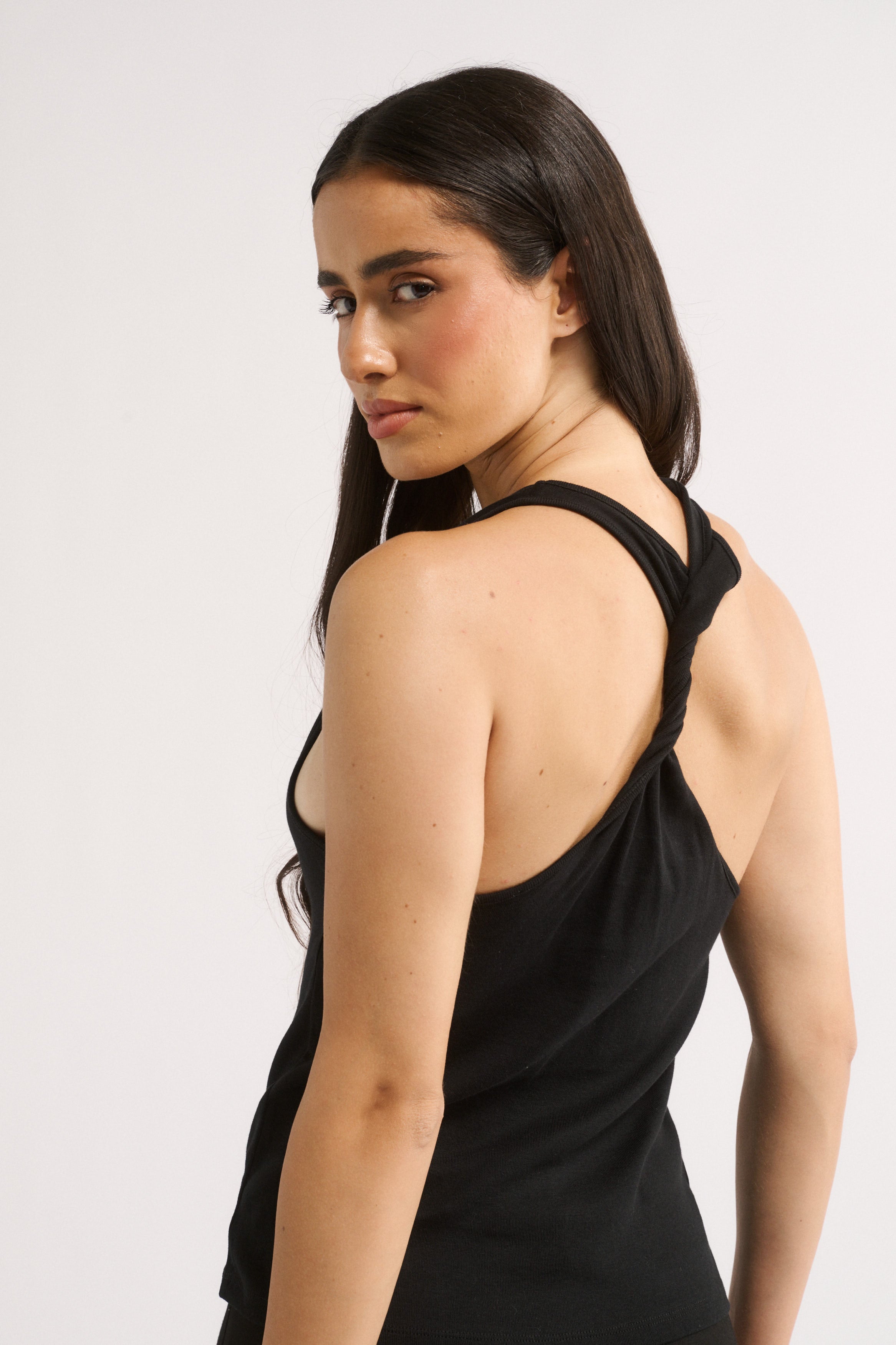 The Evelyn Twist Tank is designed to feel open and cut-away, with shape created through the twist detailing rather than a tight fit. It’s an easy, relaxed silhouette made to layer over bikinis, lace bras or bralettes.