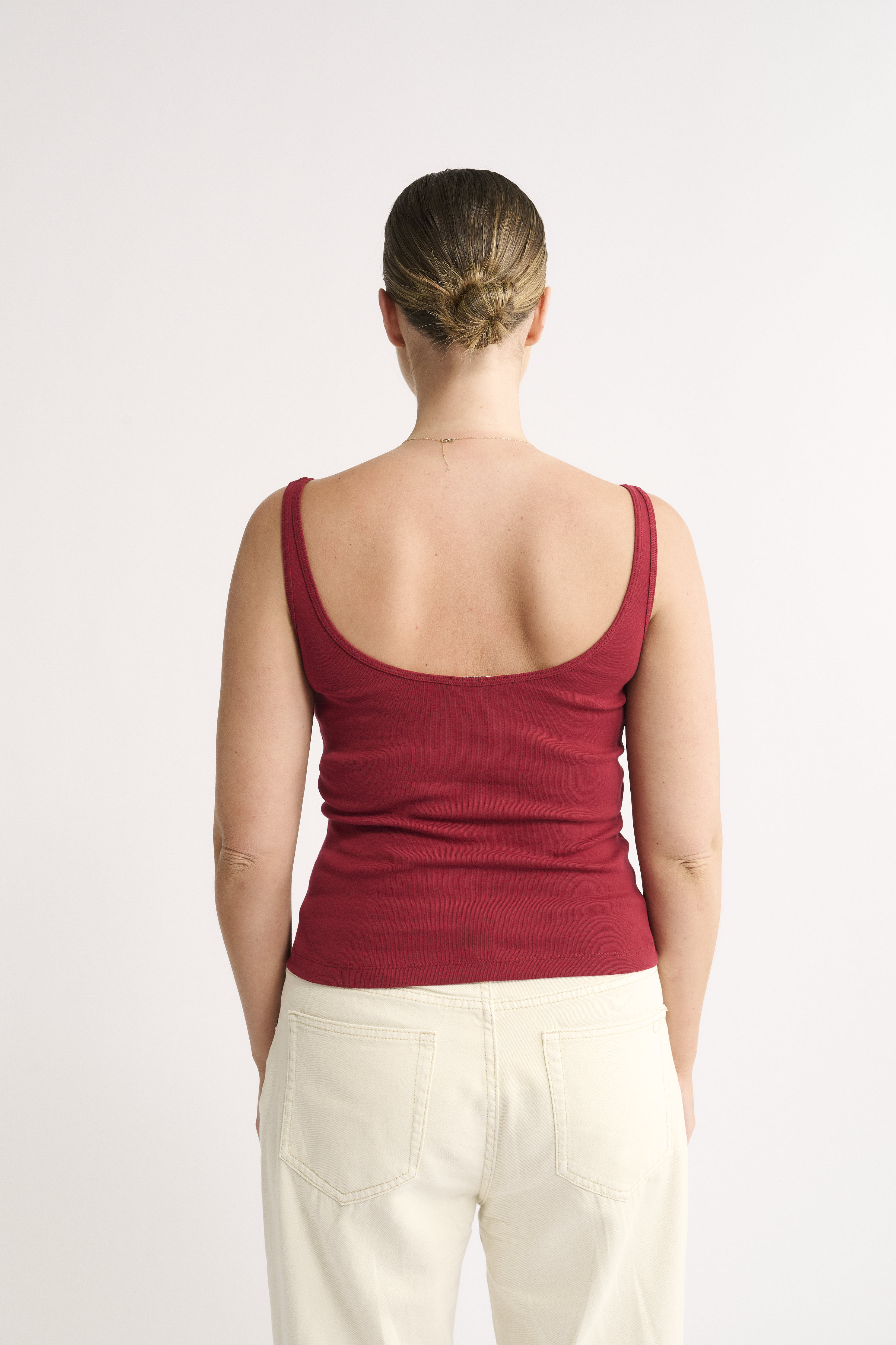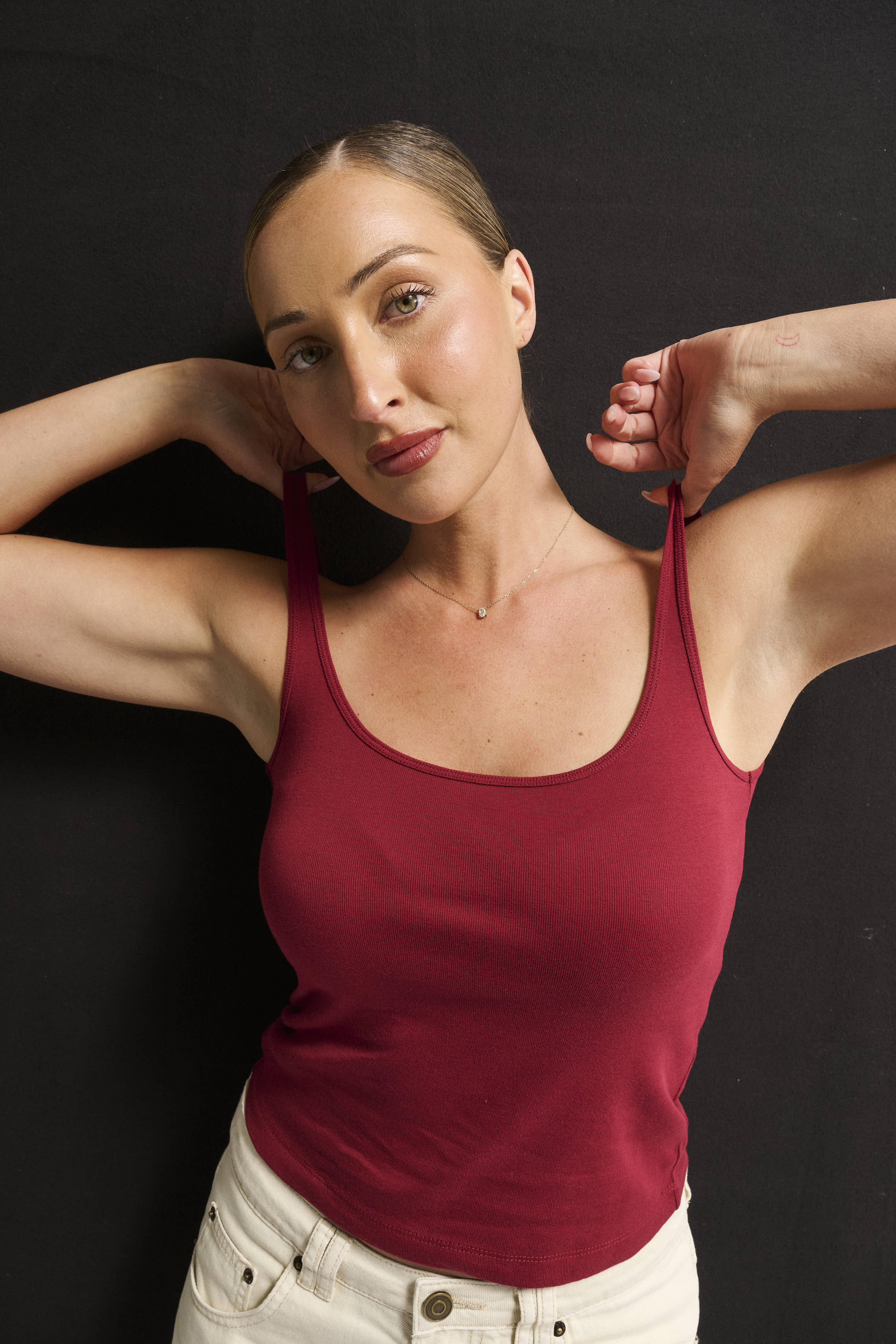 The Harper Scoop Singlet in Berry Red is a relaxed everyday staple crafted from 100% Australian Cotton. Developed in partnership with Cotton Australia, the fabric is naturally breathable and light on the body, giving the silhouette an easy, comfortable drape.