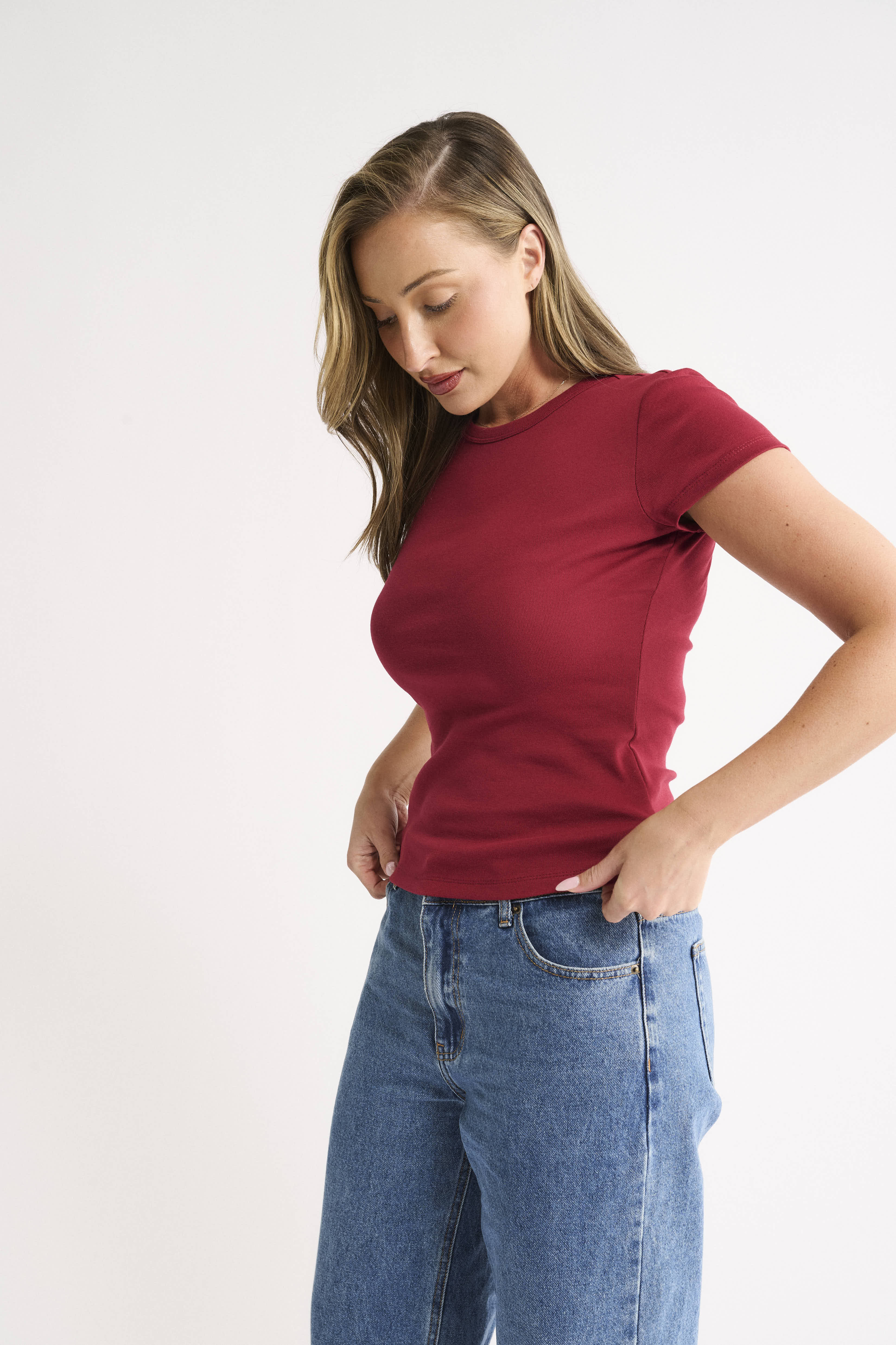 Cut from 100% Australian Cotton grown in partnership with Cotton Australia, it offers a naturally soft, breathable feel that keeps you comfortable on warm days. Finished with a relaxed fit and classic crew neckline, this tee is a simple, wearable staple, with the Berry shade adding a subtle touch of colour to your wardrobe.