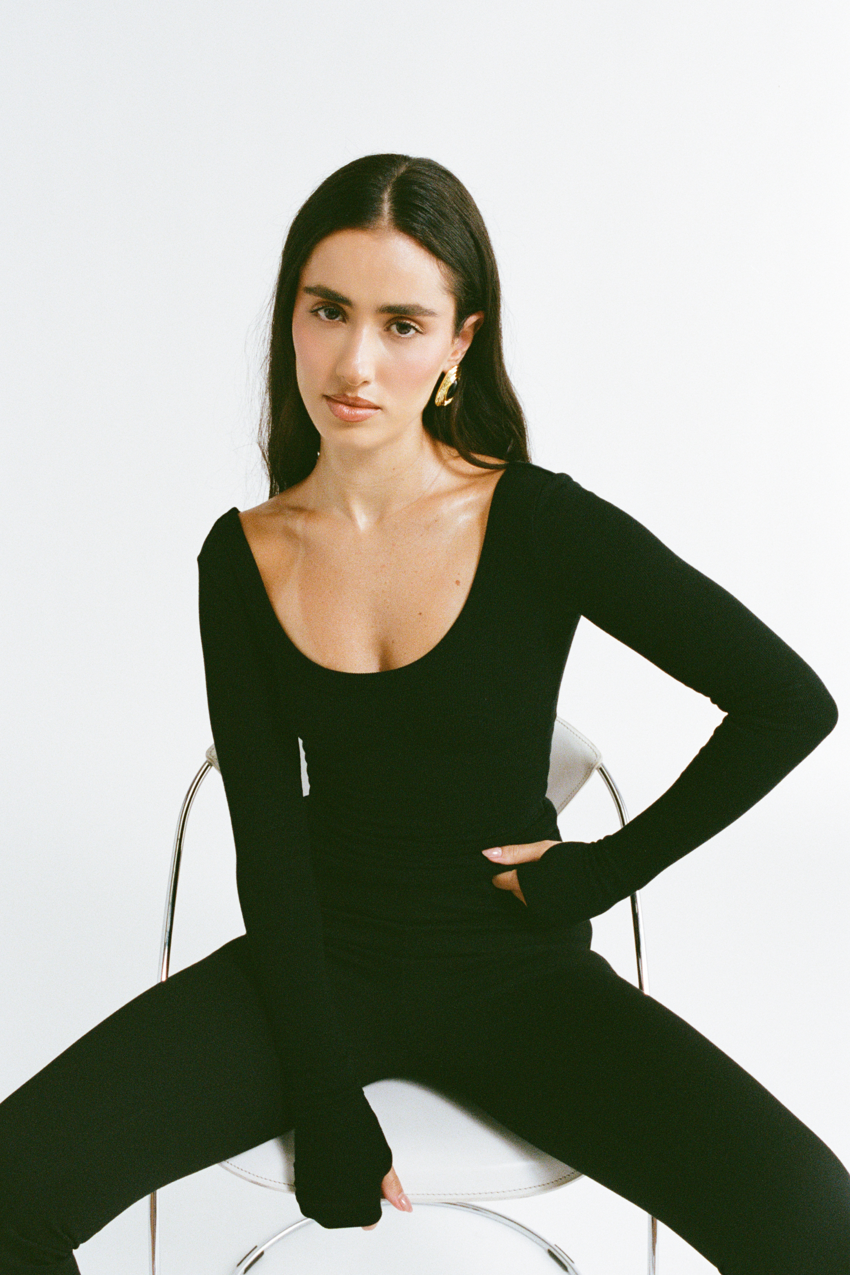Our Nat Scoop Long Sleeve is designed with a close, figure-hugging fit and a wide scoop neckline. The neckline is intentionally cut low at the front and back to create a flattering, feminine shape that feels elevated while still being an easy base layer.