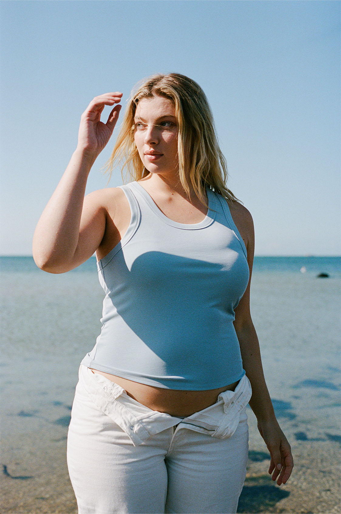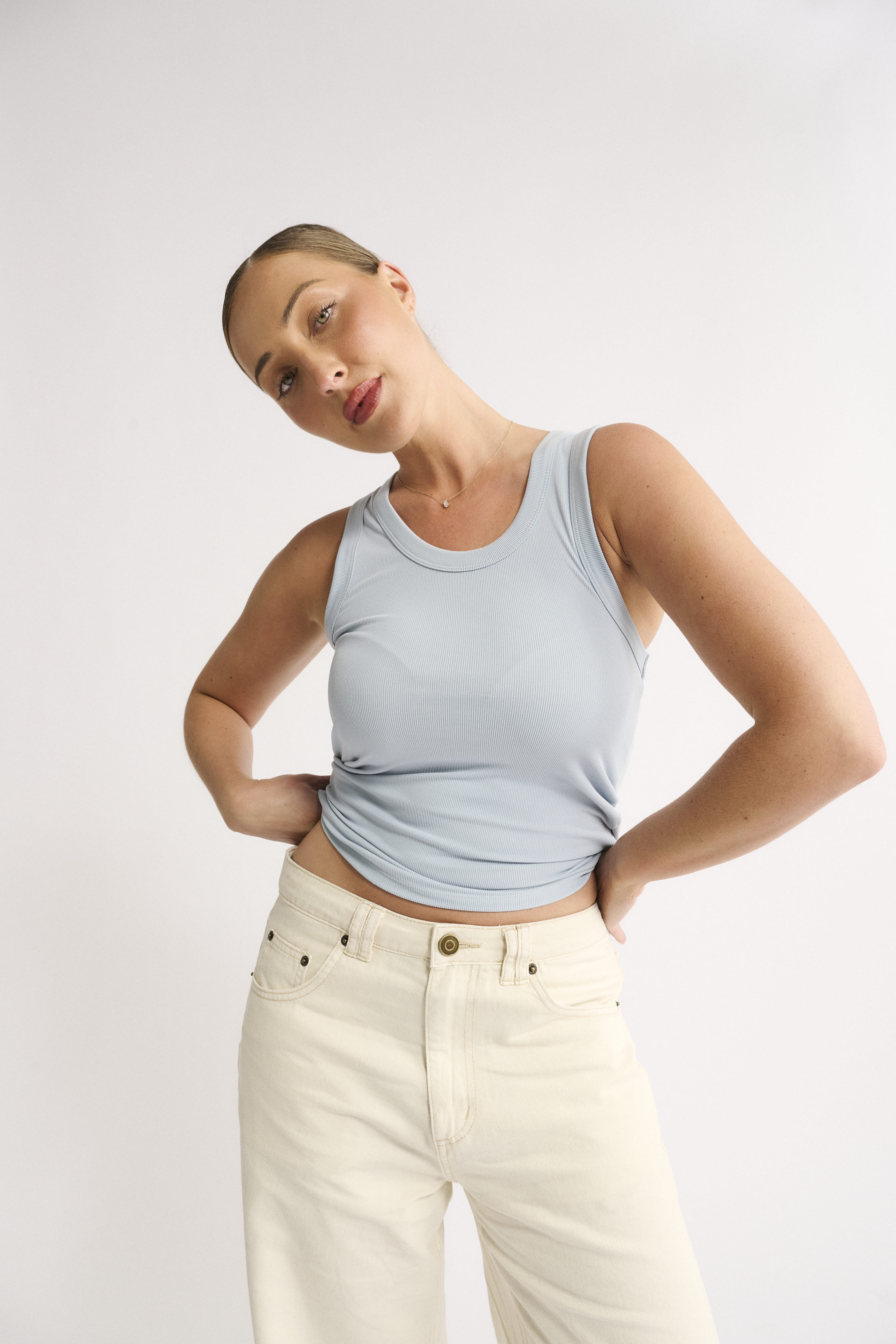 Refresh your everyday staples with Primi’s Noelle Racer Tank in Stone Blue, an essential designed for comfort and everyday style.