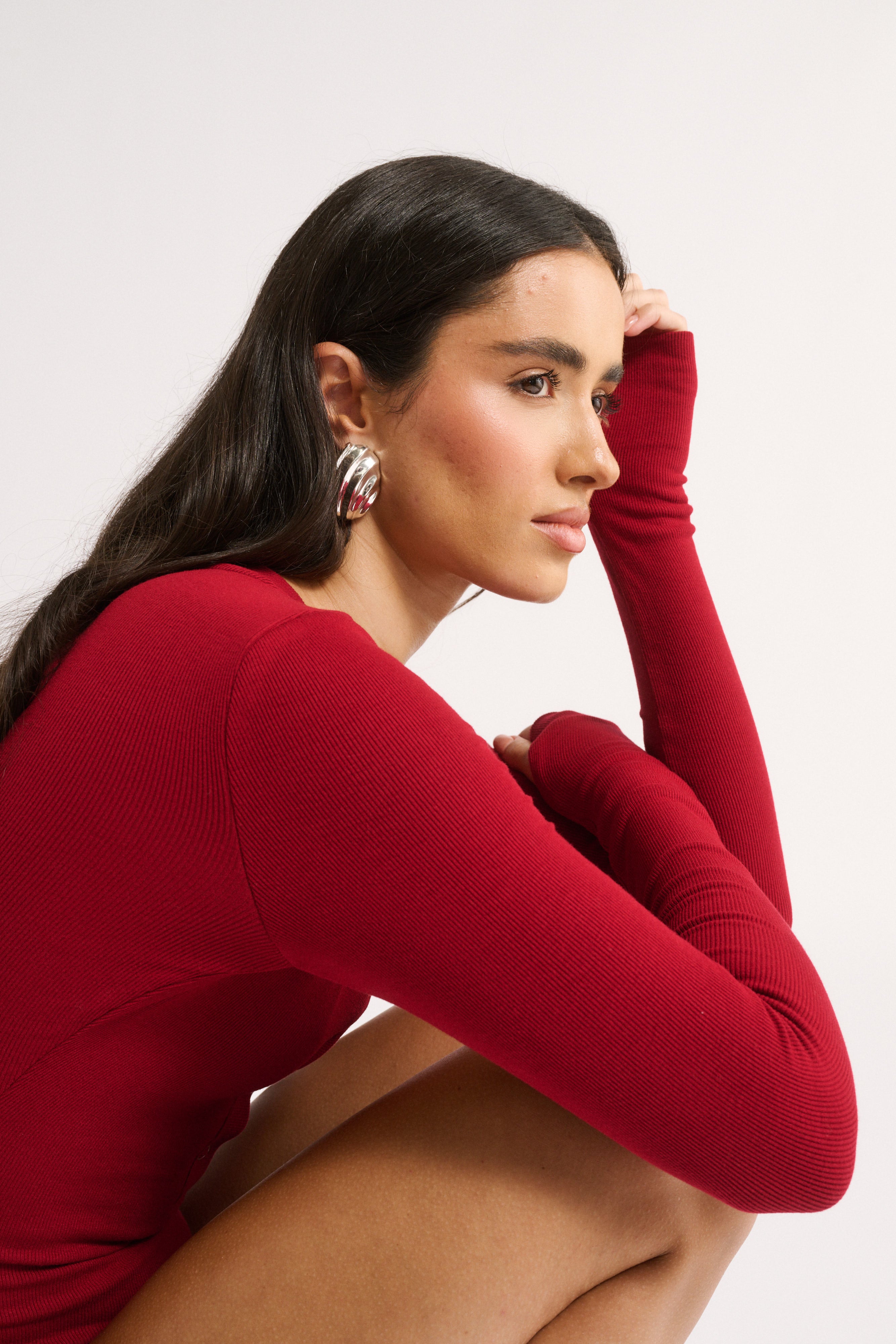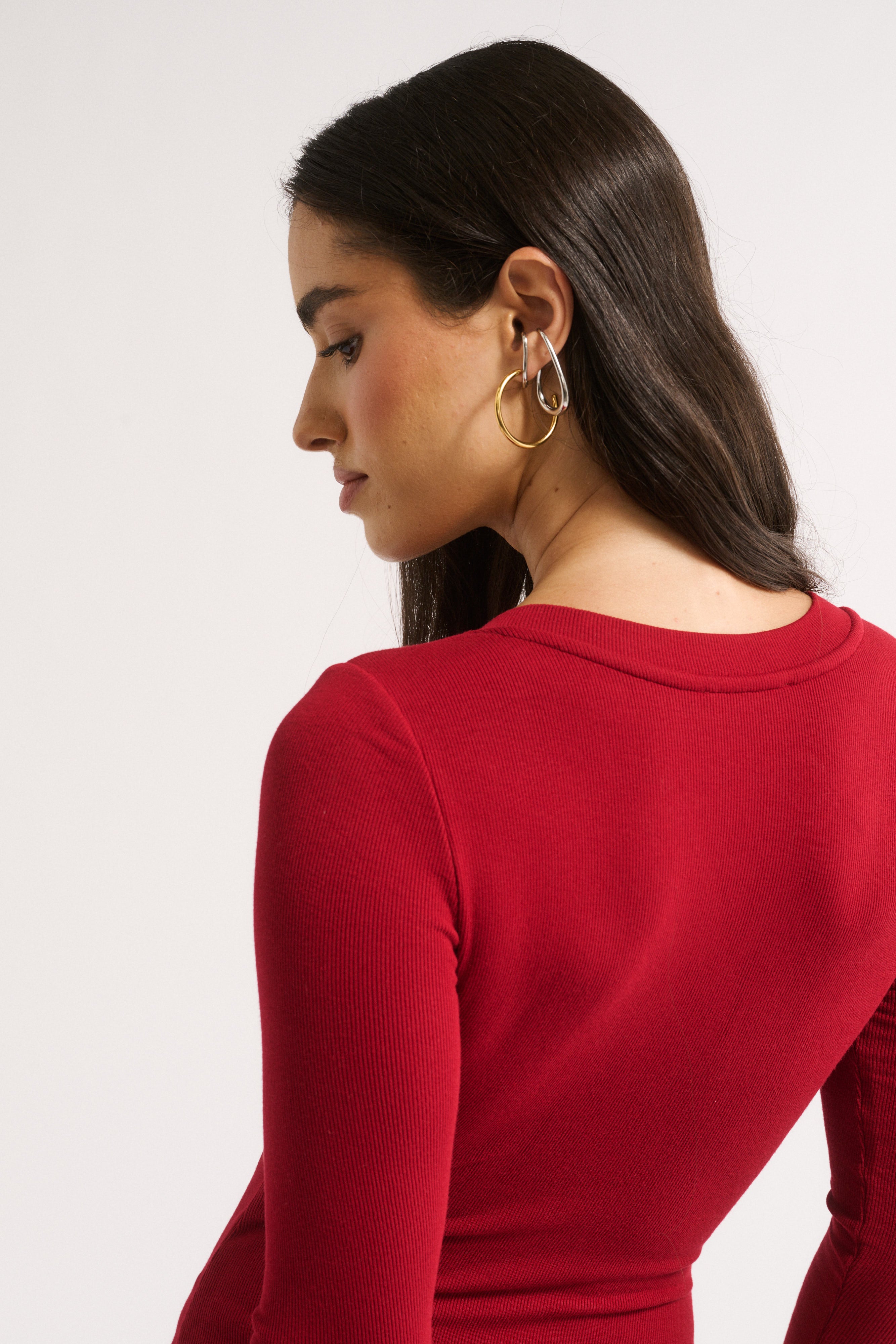 The long sleeves create a sleek, elevated look and feature subtle thumbhole cut-outs, a small detail that makes it feel a little extra special. And while the double layered rib keeps you warm and supported, the fabric still feels soft, breathable and effortless to wear.